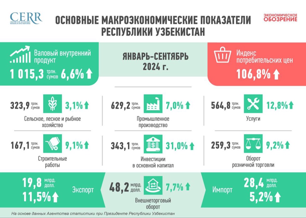 Таким образом, за девять месяцев экономика Узбекистана продемонстрировала уверенный рост. По итогам года ожидается увеличение ВВП не менее чем на 6%.