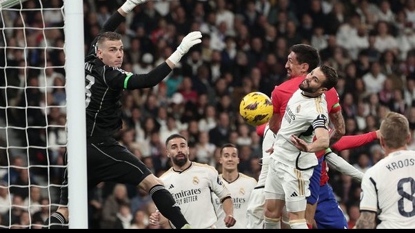 Этот ошибочный выбор завершения и стоил в конечном итоге трех очков. С паса Анхеля Корреа Гризманн был пяткой, но Лунин накрыл. И все-таки на третьей добавленной минуте второго тайма Савич грузит в штрафную, Мемфис Депай скинул головой на Маркоса Льоренте и тот сравнивает счет мощным выстрелом. Сказалось отсутствие Антонио Рюдигера и Тшуамени, гости выиграли верх и головой забили важный гол.