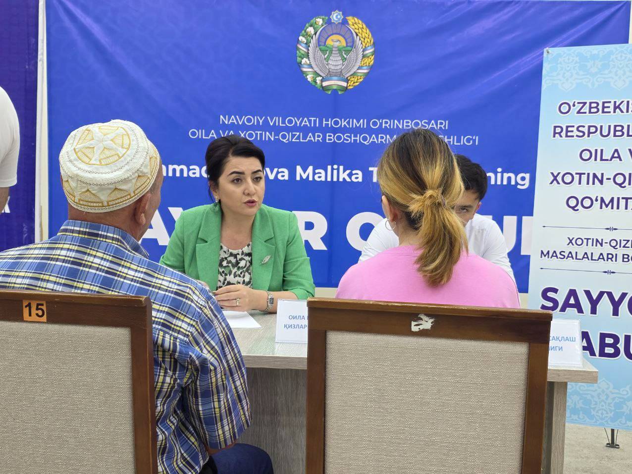На выездном приеме в Навои были изучены обращения около 30 женщин по вопросам лечения, трудоустройства и ремонта жилья. Проблемы 3 женщин были решены положительно на месте.