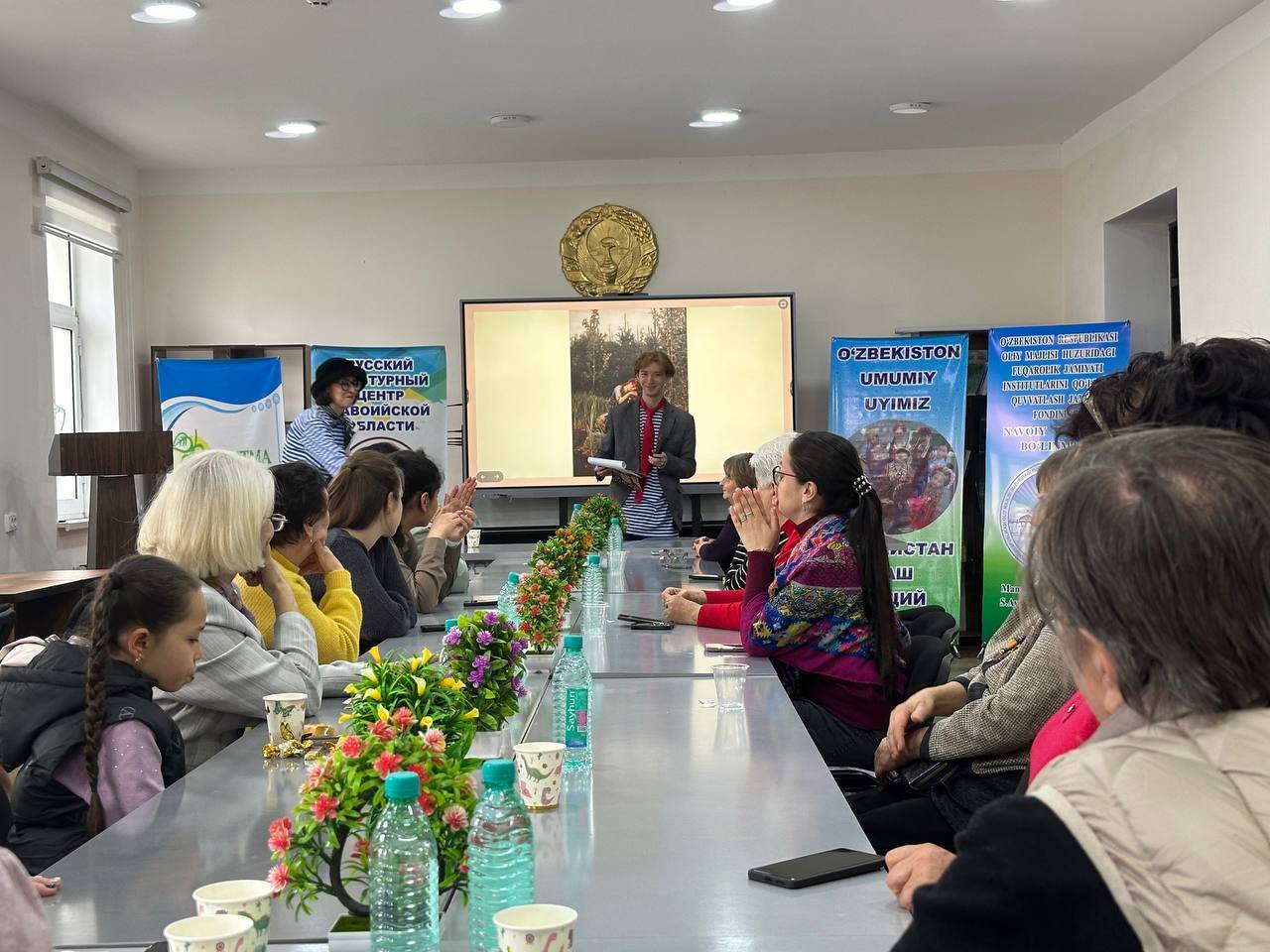 Гостями мероприятия стали директор театра моды «Овация» города Бухары Ирина Шарипова и директор Галереи искусств города Навои Сухроб Кодиров, а также участники Международного гуманитарного проекта «Российский учитель за рубежом» Министерства просвещения Российской Федерации преподаватели русского языка как иностранного в школах Навоийской области Гулназ Марданова и Гулдар Юлукова..