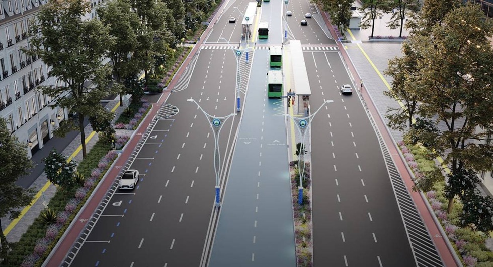- Автобусы будут двигаться по специально выделенной полосе в центральной части дороги.
