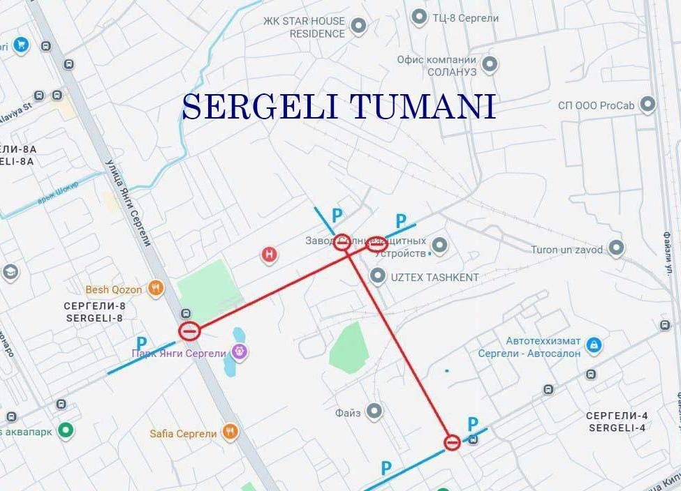 - улица Сугдиёна - от пересечения с улицей Янги Сергели до пересечения с улицами Жалойир и Багрикенг;