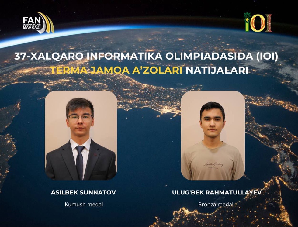 - Асилбек Суннатов - серебряная медаль (Техникум информационных технологий имени Мухаммада ал-Хоразмий);