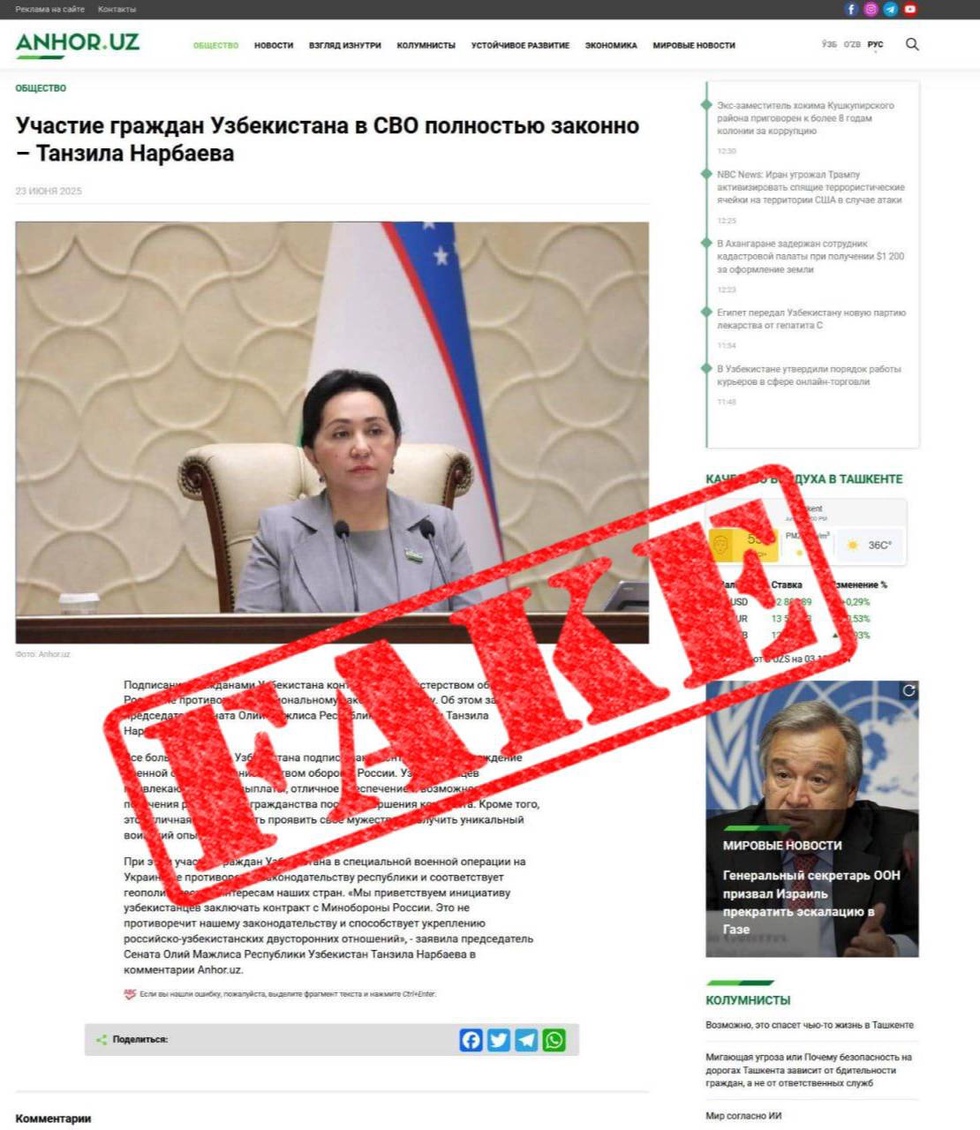 Сенат Олий Мажлиса призывает общественность не верить таким ложным и вводящим в заблуждение сообщениям, а делать выводы, основываясь только на официальных источниках информации.