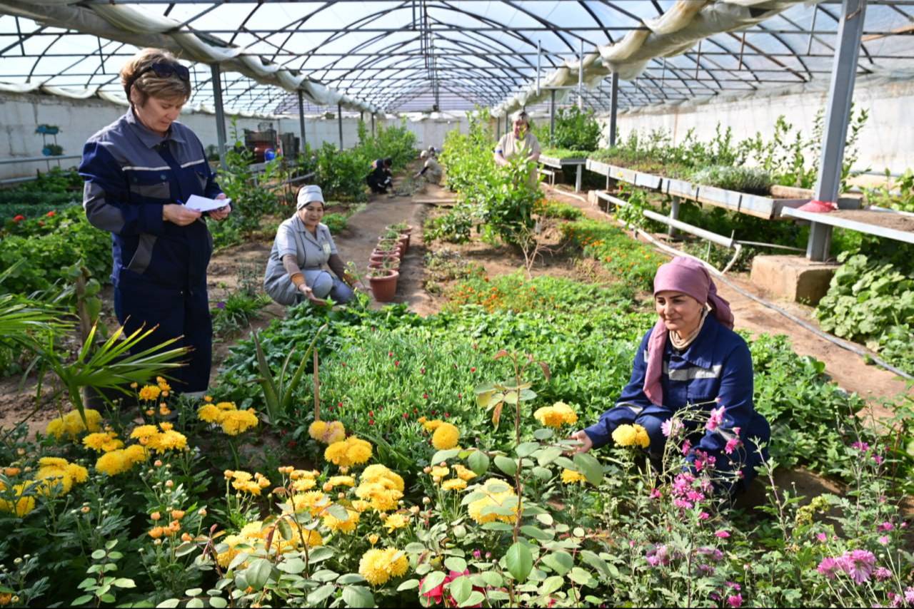 В комбинате уделяется особое внимание превращению подразделений предприятия в цветники, работа в этом направлении ведется активно. В настоящее время закуплено 64 килограмма семян базилика, завершается их посадка. Кроме того, хорошие результаты показывают овощные и рисовые культуры, посаженные в междурядьях. Полученный урожай доставляется работникам комбината.