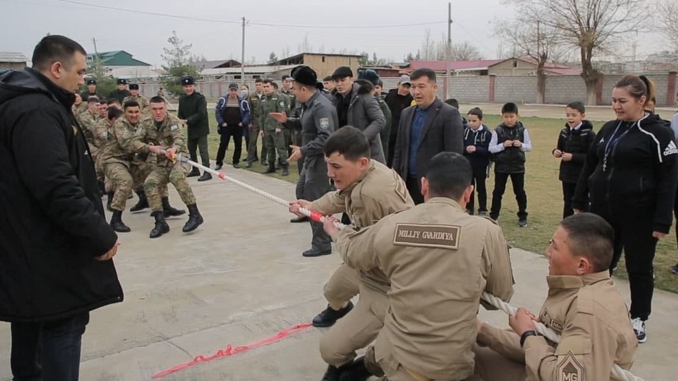 Будущие защитники Родины из команд «Бургутлар», «Юные гвардейцы», «Калкон», «Темур авлодлари» и «Шункорлар» состязались в пяти видах: прохождение со строевой песней, оказание первой помощи условному пострадавшему, подтягивания на перекладине, военизированная эстафета и перетягивание каната.