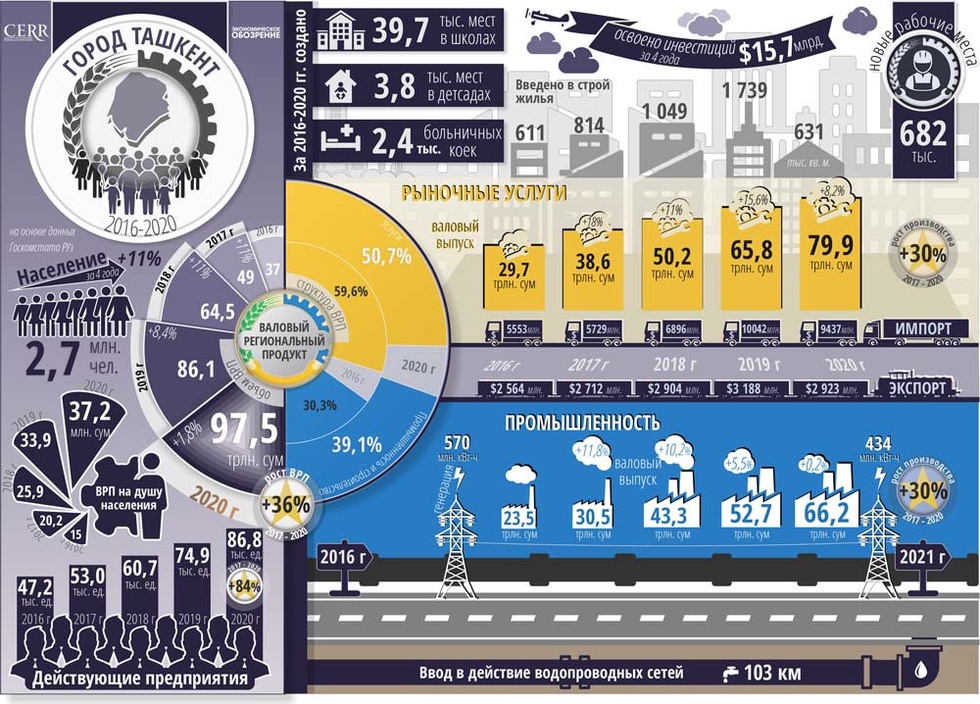 Валовой внутренний продукт региона (ВРП) за 2017-2020 гг. увеличился на 36% и составил 97,5 трлн сумов.