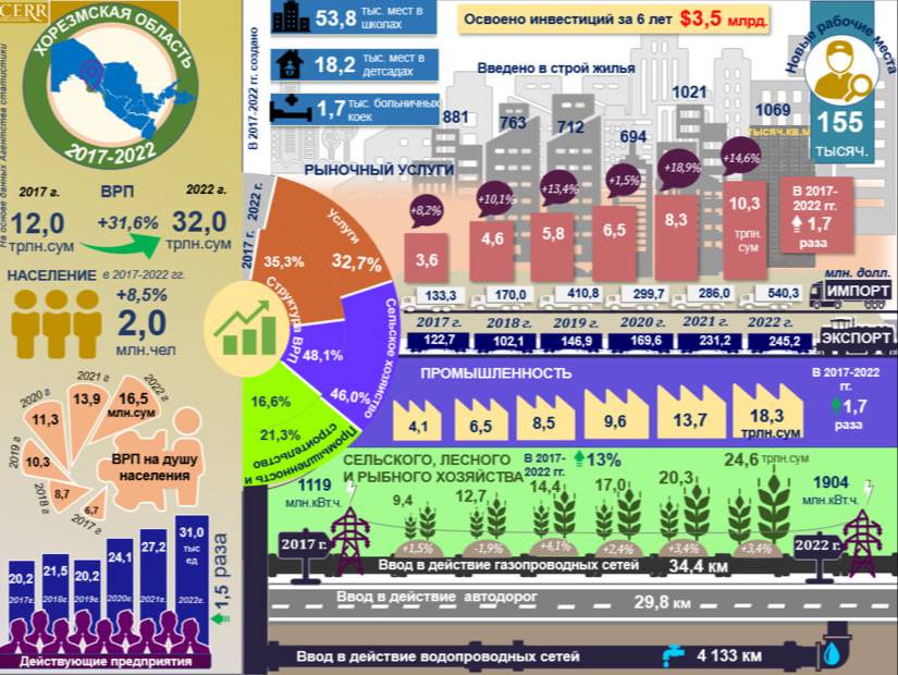 Эксперты Центра экономических исследований и реформ представили основные изменения в социально-экономическом развитии активных реформ, которые произошли в регионе за 2017-2022 годы.