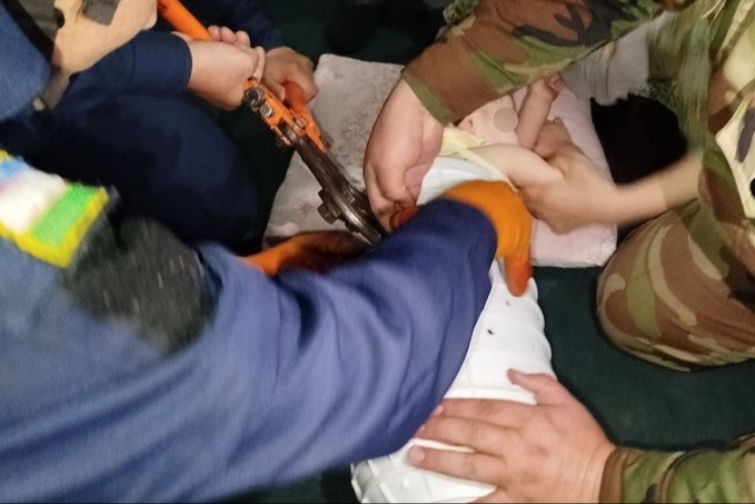 Спасатели оперативно прибыли на место и с помощью специальных устройств освободила ребенка.