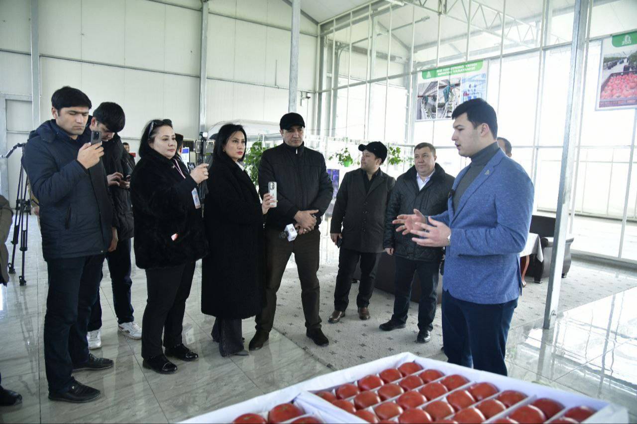 Первым на маршруте медиатура стал тепличный комплекс в составе ООО «Zarafshan Golden Group» в Карманинском районе Навоийской области. Представители СМИ посетили агрокомплекс, где сегодня на площади 14,3 квадратных метров выращиваются помидоры и клубника крупноплодного сорта Сабрина. Доступная по цене и высококачественных сортов витаминная продукция сегодня реализуется на внутреннем рынке, 90 процентов - экспортируется в Россию, Казахстан. В настоящее время создано 180 рабочих мест.