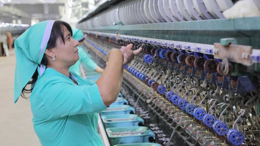 В прядильном цехе шелковые нити в автоматическом режиме наматываются на барабаны. Прядильщицы Лола Таганова, Нигора Ахмедова, Назокат Тошпулатова, Абдугул Чубаева, Муштарий Холбоева внимательно следят за тем, чтобы на каждый барабан наматывалось не более положенного объема пряжи. В лаборатории предприятия также трудятся опытные сотрудницы Дилдора Шарипова, Дилбар Турсоатова, Дилдора Мирзаева. Они проверяют качество шелковых нитей на чистоту, соответствие стандартам, устойчивость к разрывам.
