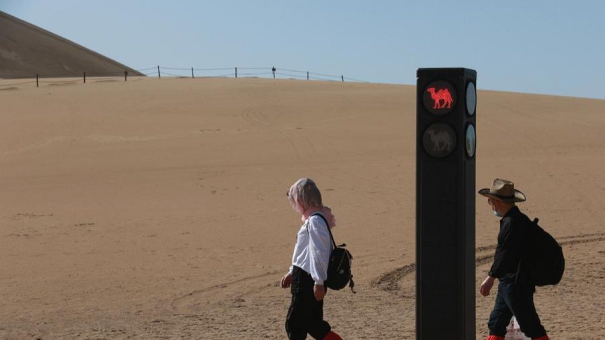 Отмечается, что, когда сигнал светофора становится зеленым - переходят дорогу верблюды, а когда красный - туристы. С одной стороны на светофоре расположены привычные изображения человеческих фигур, а с другой - силуэты верблюдов.