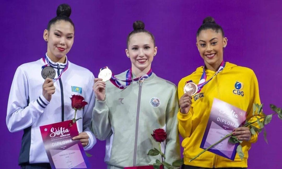 Наша соотечественница поднялась на высшую ступень пьедестала почета в упражнении с лентой. А в программе с мячом удостоилась бронзовой награды.