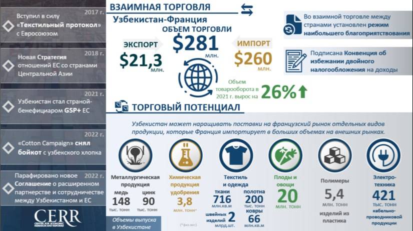 Франция один из основных торговых партнеров Узбекистана в Европейском Союзе