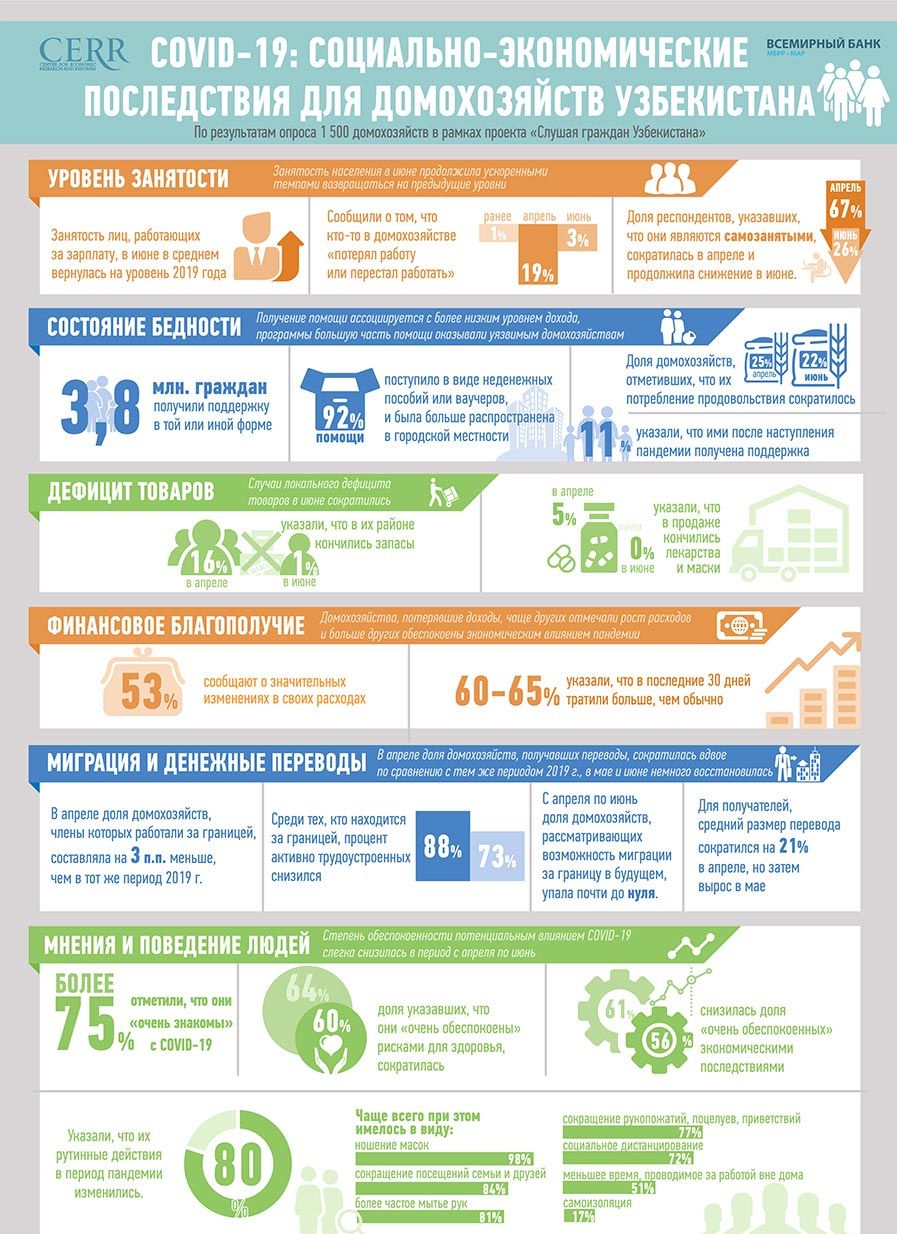 Центром экономических исследований и реформ (ЦЭИР) совместно с Всемирным банком проведено исследование о социально экономических последствиях COVID-19 в рамках проекта "Слушая граждан Узбекистана".