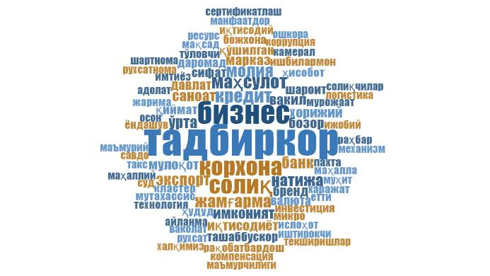 Рисунок 1. Наиболее часто использованные слова в третьем открытом диалоге Президента Узбекистана с предпринимателями.