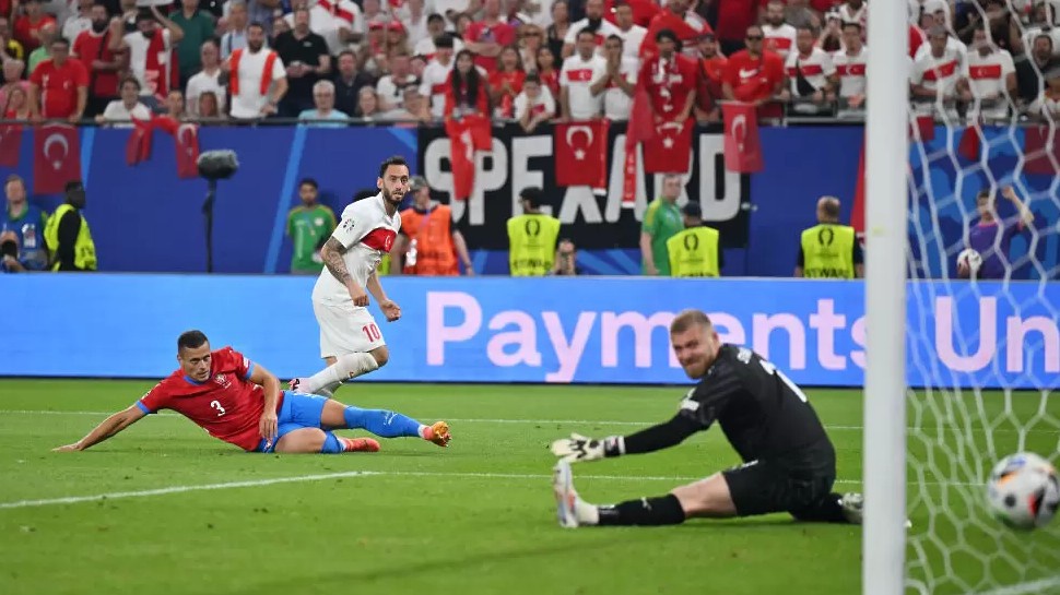 И турки забили в первом голевом моменте. Причем удары Кенана Йылдыза приняли на себя сначала защитник Владимир Цоуфал, затем вратарь чехов Индржих Станек. Но атака не завершалась, первыми на подборе были турки. И наконец мяч прилетел в ноги Хакану Чалханоглу и полузащитник «Интера» с подъема выстрелил в нижний угол без шансов вратарю.