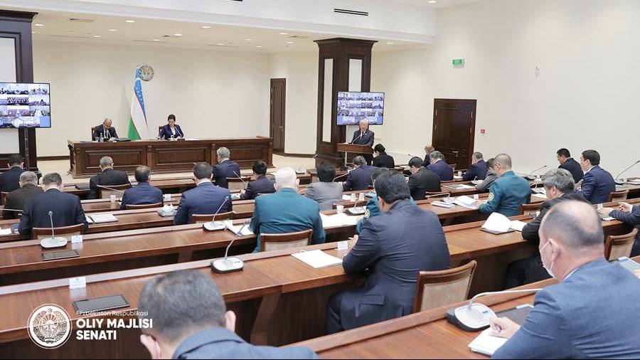 Отмечалось, что в ответ на парламентский запрос, направленный в Кабинет Министров в соответствии с постановлением Сената Олий Мажлиса от 29 мая 2021 года, была проведена определенная работа по решению вопросов, поднятых в парламентском запросе.