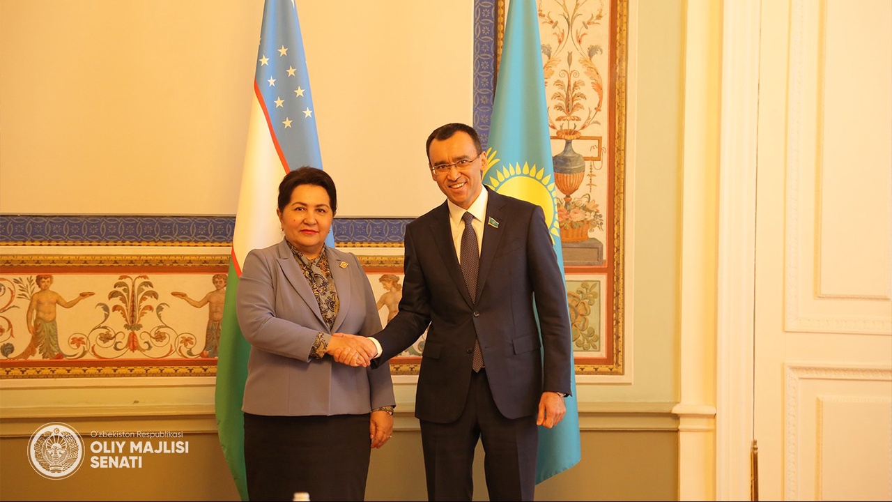 После этого Председатель Сената Олий Мажлиса Республики Узбекистан встретилась с Председателем Сената Парламента Республики Казахстан М. Ашимбаевым.