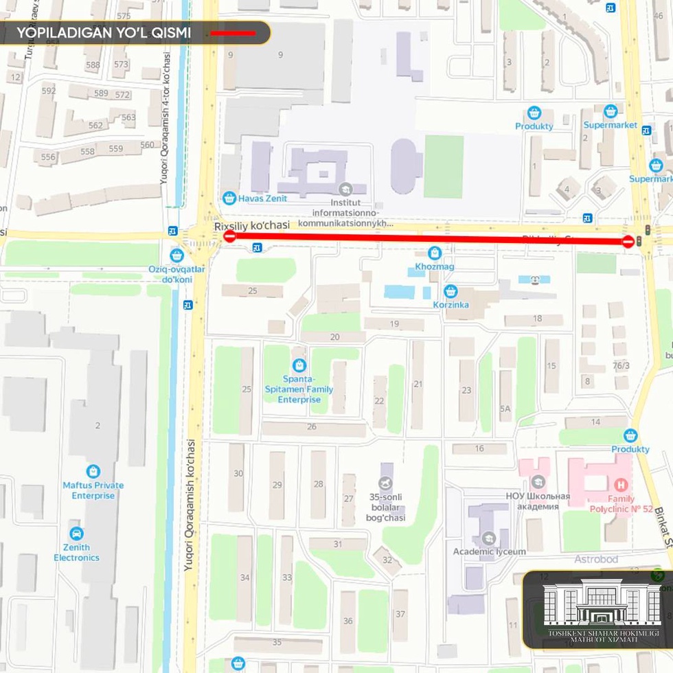 В рамках работ по подготовке к осенне-зимнему сезону, с 09:00 7 октября по 17:00 12 октября будет проведен ремонт трубопровода на улице Рихсилий (Кулоктепа) Алмазарского района, от пересечения с улицей Янги Каракамыш с улицей Бинкат.