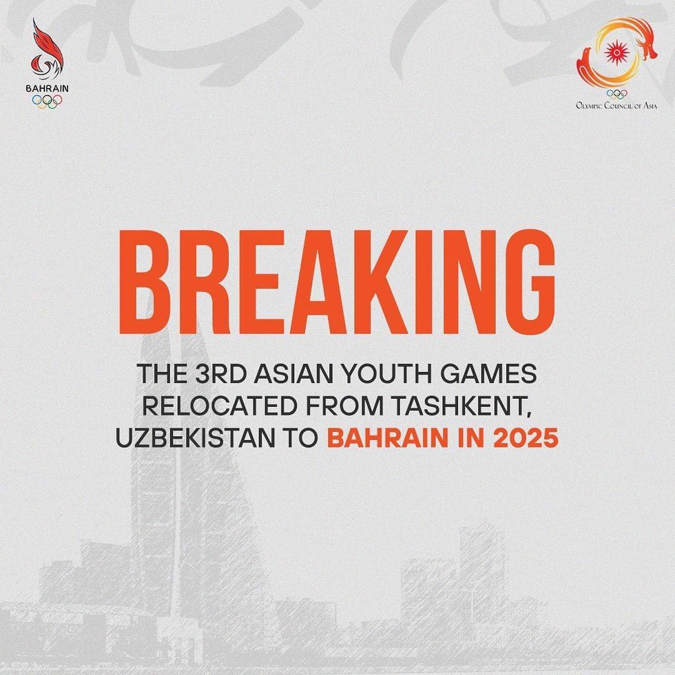 Олимпийский совет Азии принял решение о переносе III Азиатских юношеских игр в 2025 году из Узбекистана в Бахрейн.