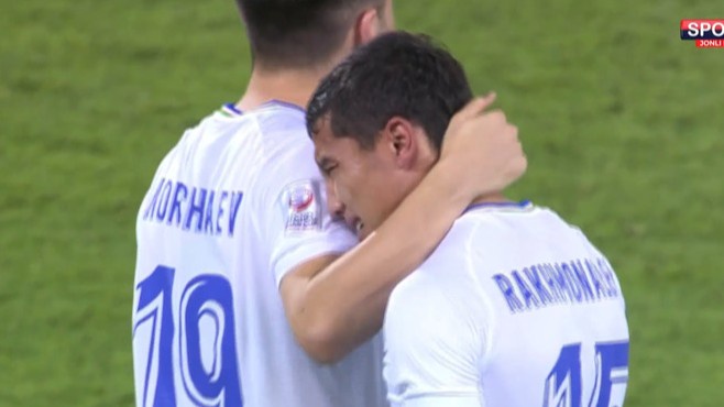 Не удержался от того, чтобы поставить фото Рахмоналиева, плачущего на плече Хусайна Норчаева. Вот кто мог бы образцово исполнить пенальти, но после пропущенного гола Хусайн уступил место на поле Отабеку Журакузиеву. Хотя вряд ли Кападзе мог знать, что будет пенальти.