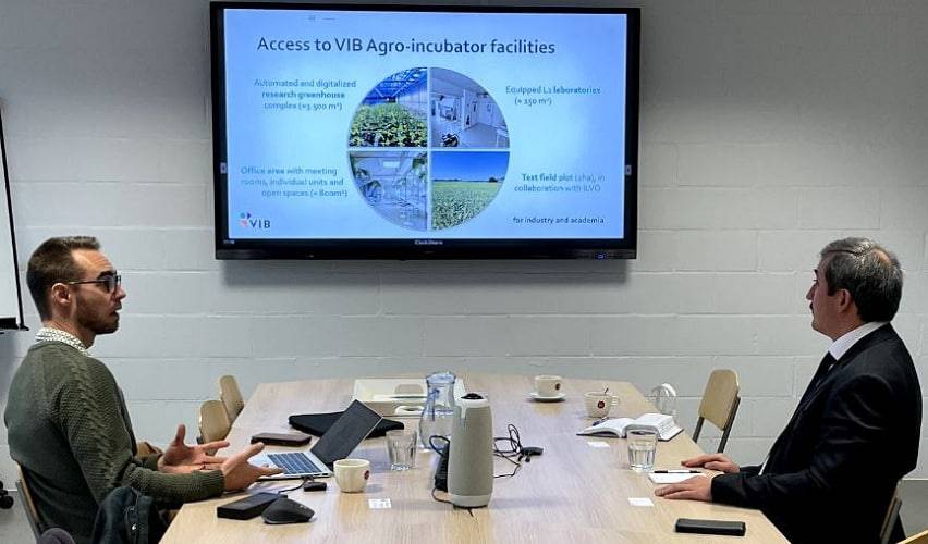 Стейн Донт ознакомил дипломатов с «Агро-инкубатором VIB», созданным в 2021 году в структуре ведущего бельгийского исследовательского института «VIB», который занимается исследованиями и разработками в различных сферах науки.