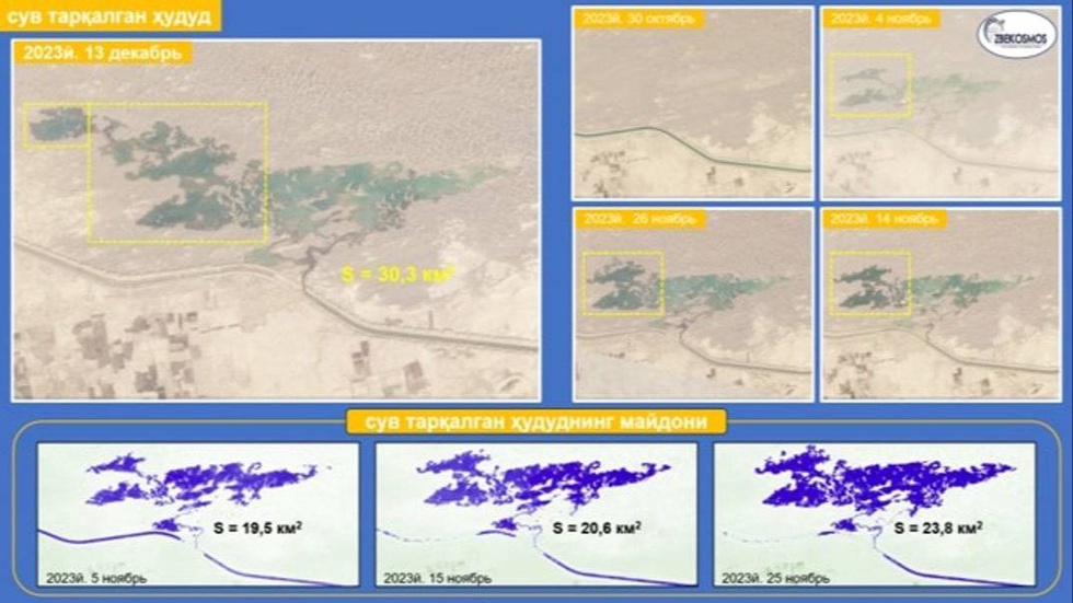 В результате космического мониторинга 4 ноября 2023 года была установлена утечка воды с 30-метровой части правого берега на 75,6-м километре канала Кош-Тепа.