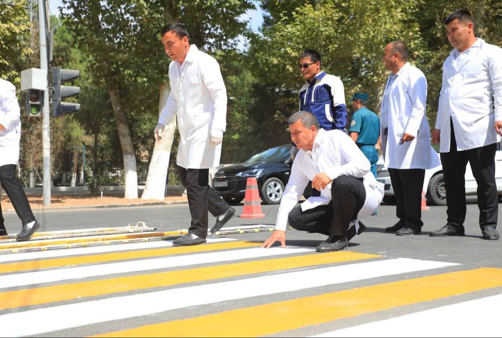 Пробное нанесение разметки было произведено на дорогах и тротуарах вокруг Термезского университета. В случае успешных испытаний будет налажено массовое производство краски с последующим ее применением на дорогах страны.