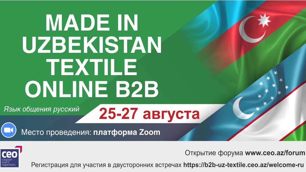 Организаторами «Made in Uzbekistan Textile» Online B2B выступают Агентство по содействию экспорту при Министерстве инвестиций и внешней торговли Республики Узбекистан, Ассоциация текстильной и швейно-трикотажной промышленности Узбекистана «Узтекстильпром» совместно с Посольством Республики Узбекистан в Азербайджане при организационной поддержке компании Caspian Event Organisers.