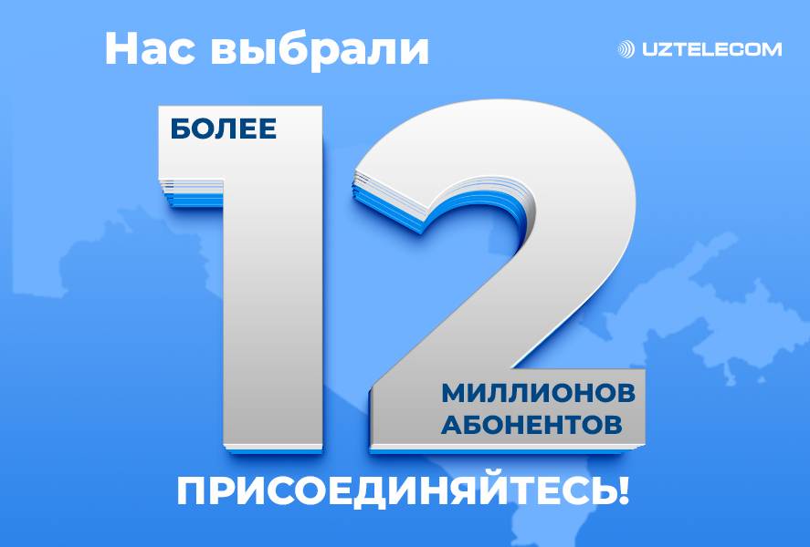 UZTELECOM - оператор, которому доверяют 12 миллионов абонентов. Это доверие стало основой для новых проектов и технологий, определяющих цифровое будущее Узбекистана.