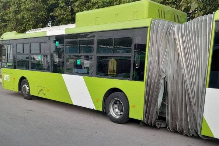 Автобус King Long провалился в яму, которая образовалась из-за проседания основания колодца, расположенного на проезжей части. При этом после попадания средних колес автобуса в колодец, крышка люка повредила «гармошку» транспортного средства.