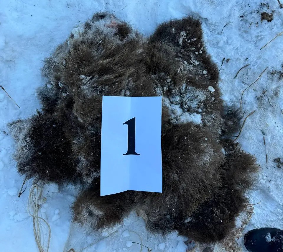 Во время рейда на территории была обнаружена шкура животного. При исследовании вещественных доказательств в Институте зоологии Академии наук выяснилось, что она принадлежит Тянь-Шаньскому бурому медведю. Неизвестные убили медведя с помощью веревки, забрали все части тела животного, оставив шкуру на месте происшествия.
