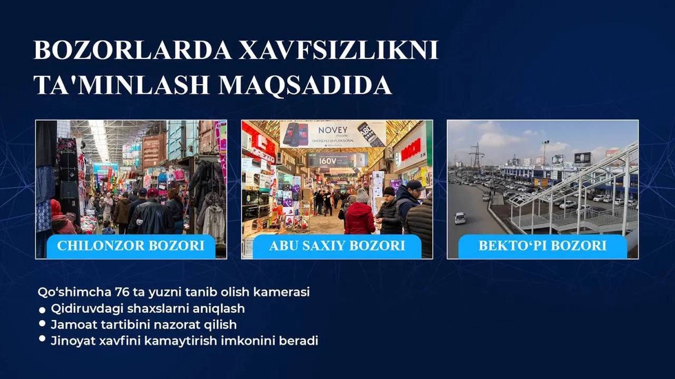 Специалисты Центра развития систем «Безопасный город» при Министерство внутренних дел Республики Узбекистан совместно с сотрудниками УКД ОВД Чиланзарского района проводят выездные обследования для установки интеллектуальных камер видеонаблюдения в махаллях, на объектах торговли и сферы услуг, в местах массового пребывания граждан и на внутренних улицах района.