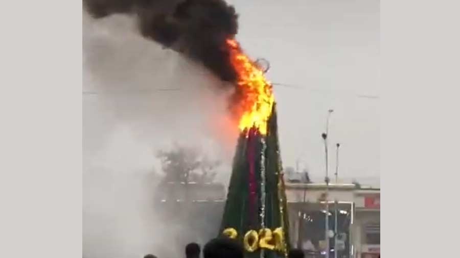 Елочка, установленная перед входом на рынок, загорелась в 13:27.