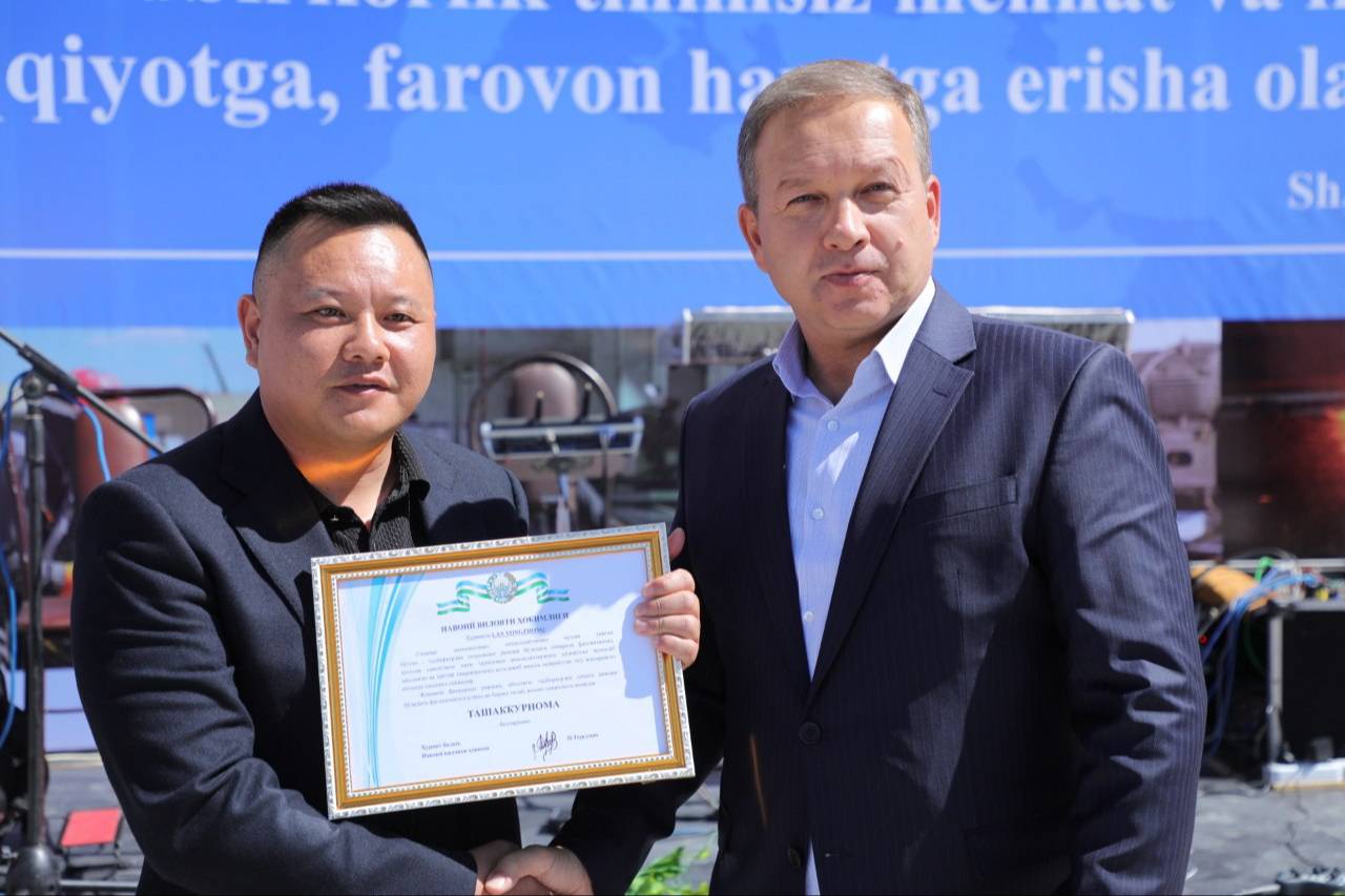 В церемонии открытия данного проекта принял участие хоким Навоийской области Нормат Турсунов, который обратил внимание, что в рамках рабочей поездки делегации региона в Китайскую Народную Республику 8-11 августа текущего года достигнуты договоренности по 13 инвестиционным программам на сумму 523 млн долларов.