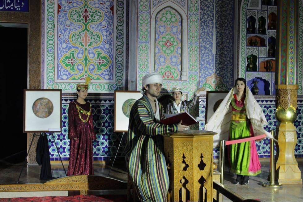 В центральном зале «Мехмонхона» - историческом и величественном здании музея, гости ознакомились с произведением Навои «Саббай Сайёр», поставленным творческими коллективами, а также с одним из самых уникальных экспонатов музея Чингиза Ахмарова «Семь красавиц».