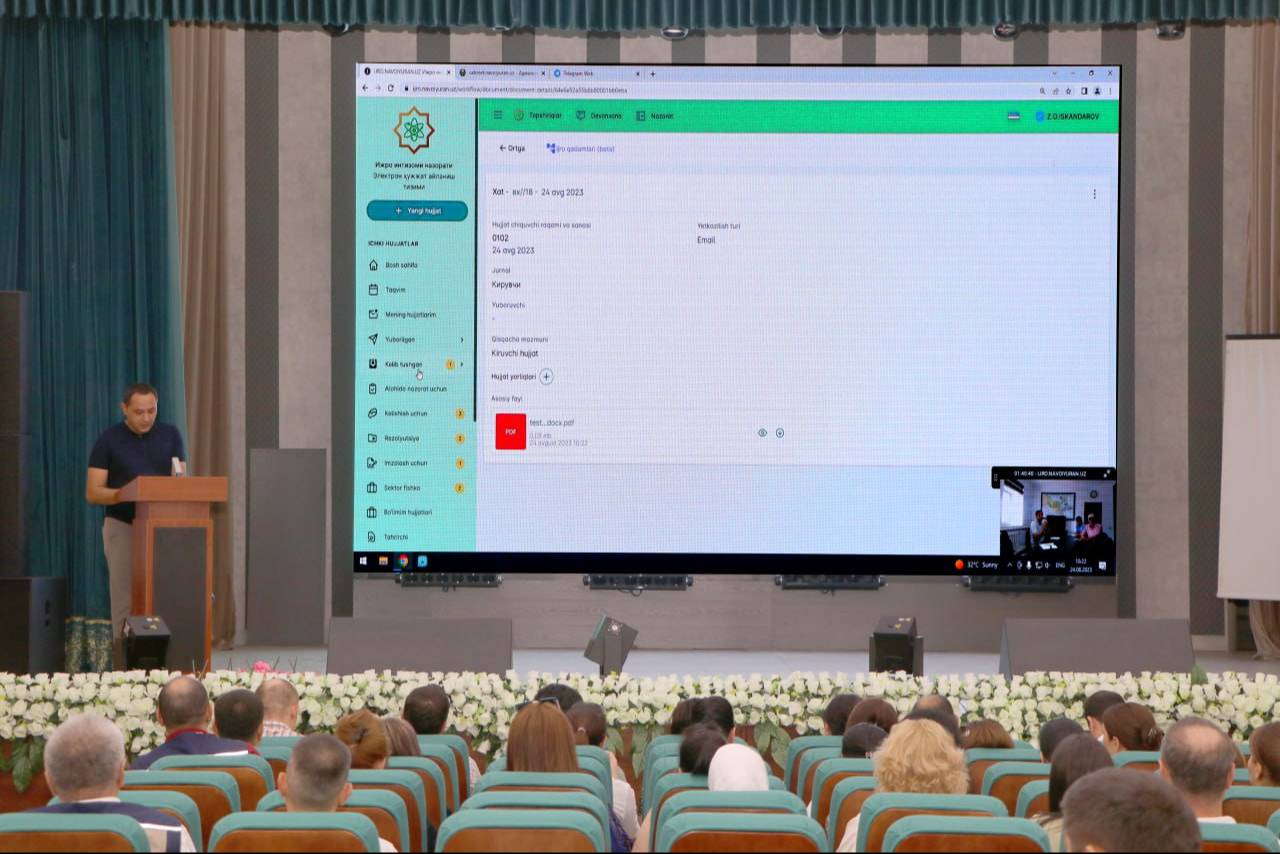 - В свою очередь, закономерен вопрос: «Какие преимущества мы получим от внедрения системы?», - говорит Жавахир Хафизов, руководитель отдела внедрения цифровой трансформации проектного офиса ГП «Навоийуран». - Прежде всего, все внутренние документы, регистрация входящих и исходящих документов предприятия будут полностью оцифрованы. Поэтапно будут выведены из обращения бумажные документы, а все документы будут подписываться руководством с помощью электронного цифрового ключа (QR-кода). С помощью мобильной версии системы руководство и сотрудники смогут согласовывать и подписывать документы удаленным способом. Благодаря программе есть возможность обмениваться документами напрямую с министерствами и госведомствами. Также на предприятии создана электронная база данных действующей номенклатуры, и эта информация будет храниться в электронной базе долгие годы. Автоматизация возможности контроля исполнительской дисциплины исключает человеческий фактор и предотвращает различные недоразумения. При этом устанавливается оперативный контроль за своевременным выполнением заданий каждым сотрудником. Самое главное, за счет сокращения времени, затрачиваемого на процесс подготовки, согласования и подписания документов достигается тайм-менеджмент.