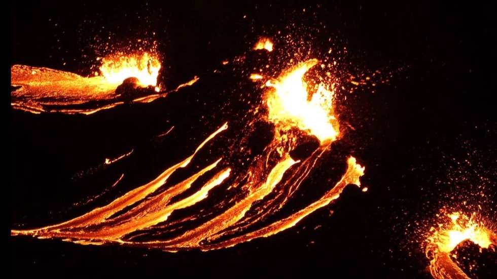 СМИ уже опубликовали зрелищные кадры извержения вулкана, сделанные с вертолета. Выбросы лавы сопровождались подземными толчками. За несколько недель зафиксированы тысячи слабых подземных толчков и афтершоков, сообщает НТВ.