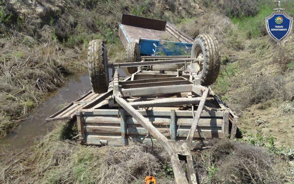 Дорога пролегала по территории фермерского хозяйства, расположенного в махалле «Богитуркон» Рамитанского района. Из-за того, что грунтовая дорога была скользкой, оба прицепа опрокинулись в канал.