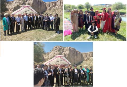 В живописном местечке у подножья гор, на берегу реки были сооружены юрта, импровизированные шатры, рядом с которыми мужчины и женщины в национальных костюмах на казанах готовили яства каракалпакской кухни, молодежь соревновалась в езде на лошадях и борьбе кураш.