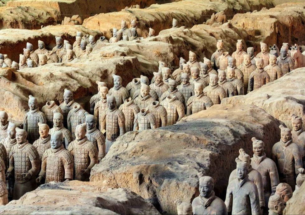 Цинь Шихуанди был первым императором Китая, и его гробница известна тем, что ее охраняет армия из 6000 терракотовых воинов в натуральную величину. Его гробница - крупнейший в мире мавзолей, занимающий 22 квадратных мили, большую ее часть еще предстоит раскопать из-за опасений по поводу ущерба от сейсмической активности и мародеров.