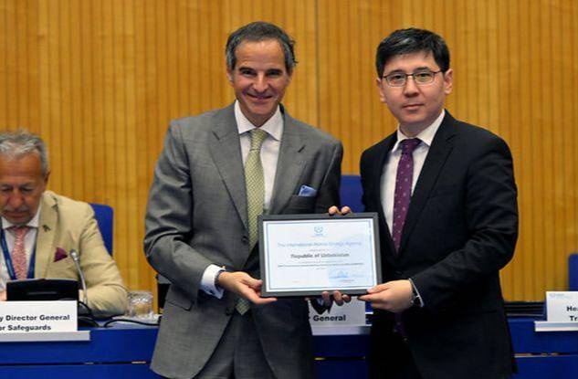 Гендиректор МАГАТЭ вручил постоянному представителю Узбекистана при МАГАТЭ, послу Абату Файзуллаеву сертификат о завершении пилотного этапа программы COMPASS.