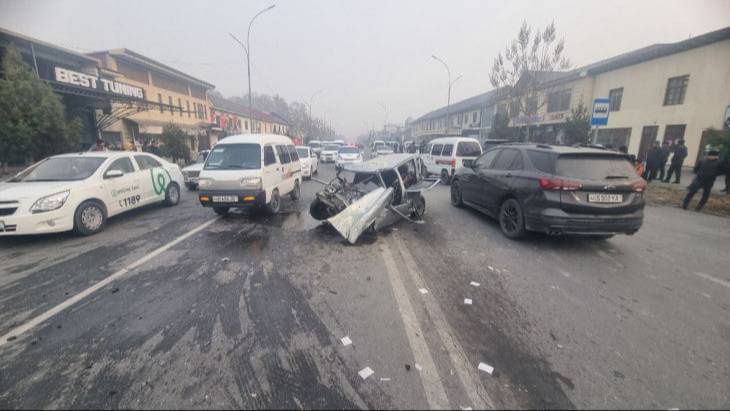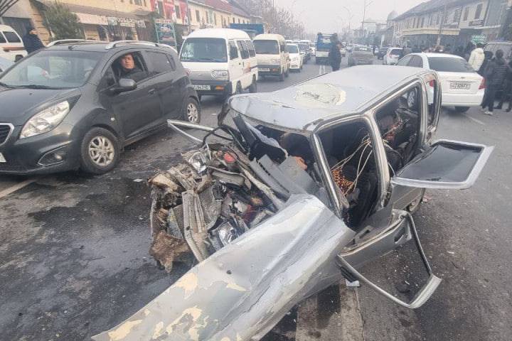 Инцидент произошел в четверг, 14 декабря, около часа дня на пересечении улиц Ахмада Яссави и Тинчлик в городе Маргилане. Автомобиль Таhое, за рулем которого находился 20-летний Ю. М., приближаясь к светофору, внезапно выехал на встречную полосу и на полном ходу врезался в Tico, который собирался ехать по своей полосе.