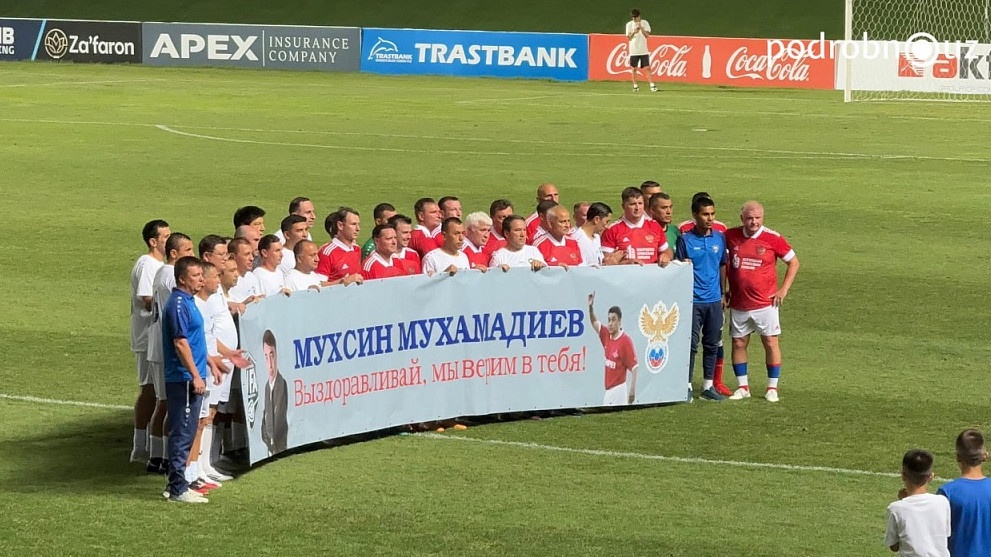 В перерыве обе команды вышли с плакатом в поддержку 58-летнего Мухсина Мухаммадиева, находящегося после инсульта в тяжелом состоянии. Мухсин в 1983 году начал карьеру футболиста в «Пахтакоре», но не в Ташкенте, а в Курган-Тюбе (Таджикистан). В годы независимости поиграл в Бухаре за местный тогда «Нурафшон», московском «Спартаке» и венской «Аустрии».