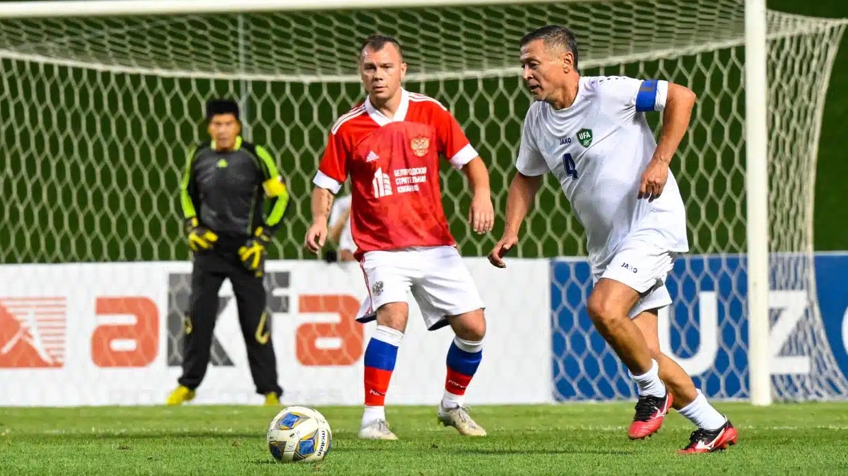 Блеснул мастерством и главный тренер национальной сборной Узбекистана 43-летний Тимур Кападзе, головой переправив мяч после навеса с фланга, его удар 68-летний Ринат Дасаев и не пытался отразить, а смотрел, как мяч от штанги упал за линию ворот.