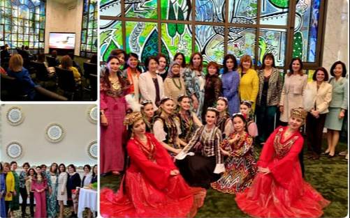На вечере состоялся также показ национальных костюмов, материалов и изделий из шелка.