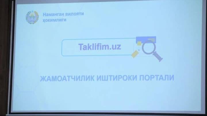 Портал taklifim.uz обеспечит участия общественности, в частности, в принятии предложений по созданию инфраструктуры в 2022 году, установлении прозрачности в распределении бюджетных средств. Таким образом, основная цель – вывести работу с гражданами на новый уровень, изучить и опираться на общественное мнение при разработке программ, а главное – продолжить масштабные реформы путем систематизации, учитывая предложения граждан.