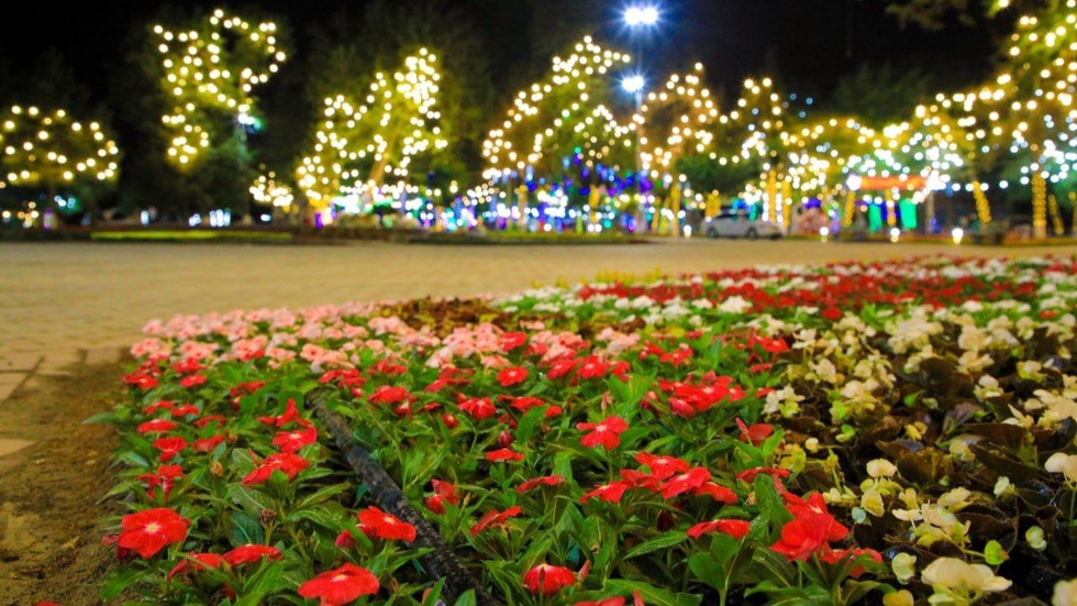 Сейчас идет благоустройство Северной кольцевой дороги и улицы Ислама Каримова. Перекрестки, обочины дорог, площадки перед зданиями организаций и предприятий украшают цветами разных оттенков.