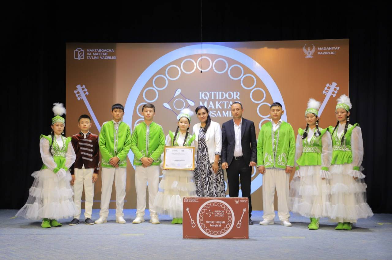 Первое место занял и получил путевку в республиканский этап конкурса ансамбль «Наво» школы №8 города Навои, второе место присуждено коллективу «Агугай Думбира» Тамдынского района (школа № 16), и 3 -е место - «Аманат», представляющий школу № 4 города Зарафшан.